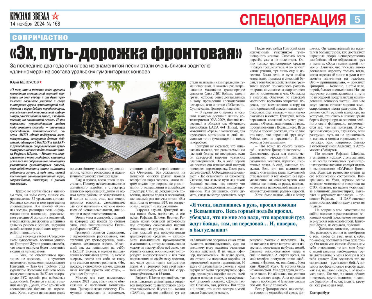 В газете «Красная звезда» вышел материал о нашем водителе Григории Жукове.