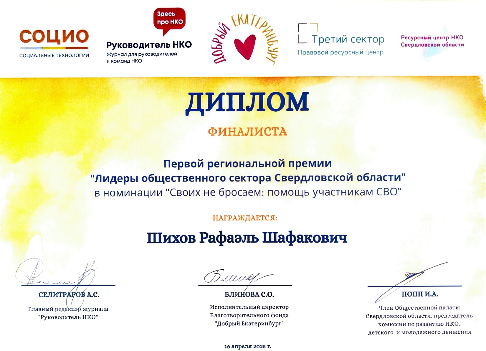 Номинация «Своих не бросаем: помощь участникам СВО» собрала самое большое количество участников. Рады сообщить, что финалистом в ней стал Р.Ш. Шихов.