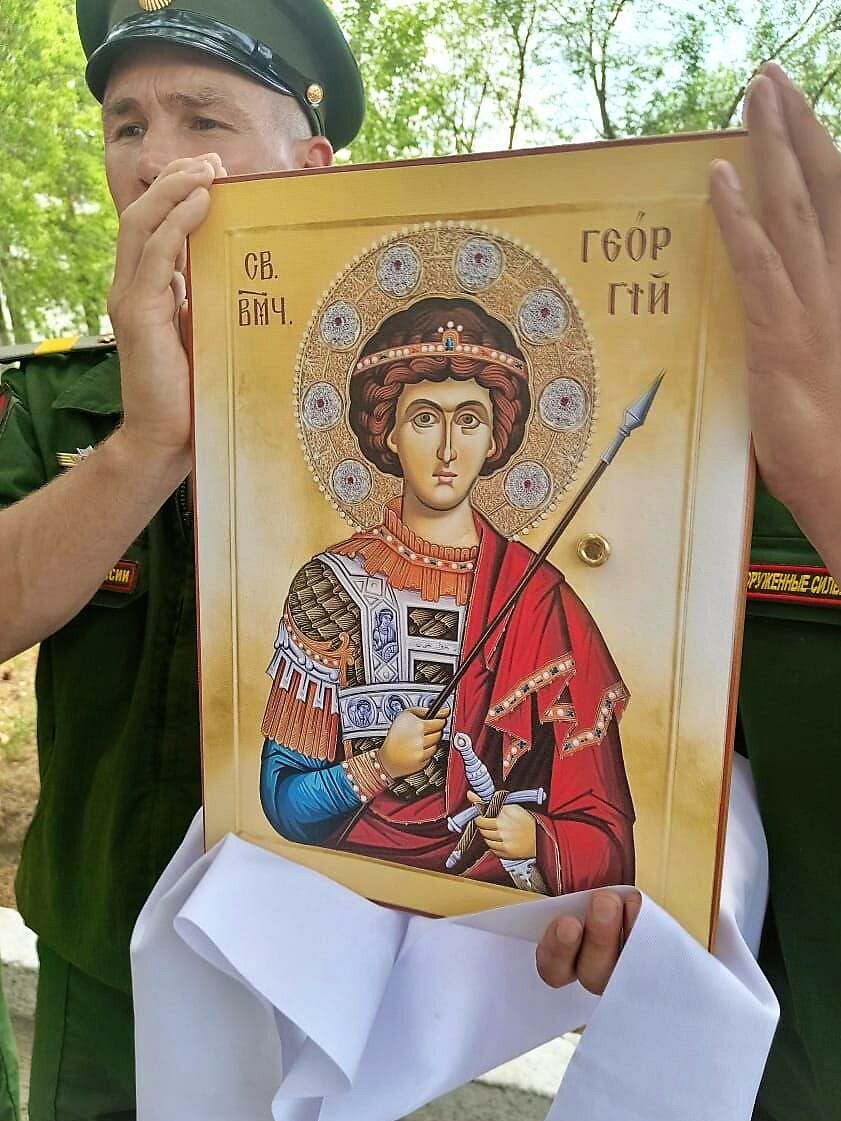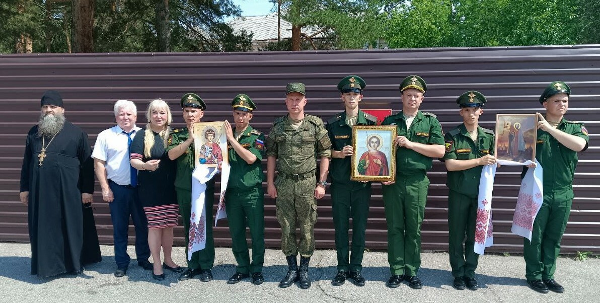 Президент Благотворительного Фонда «Святого мученика Вонифатия» Наталья Сергеевна Мезенцева (Москва) при содействии председателя попечительского совета Автономной некоммерческой организации «Фонд поддержки офицеров СВВПТАУ и ЕВАКУ» Рафаэля Шихова передала в знак благодарности за подготовку военнослужащих, убывающих в зону СВО, иконы святого Александра Невского и святого Георгия Победоносца с частицами мощей в воинские части ЦВО.